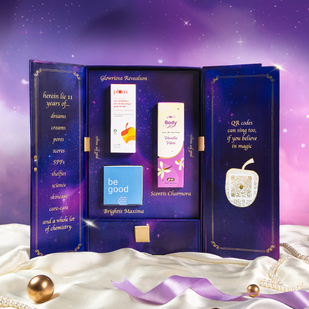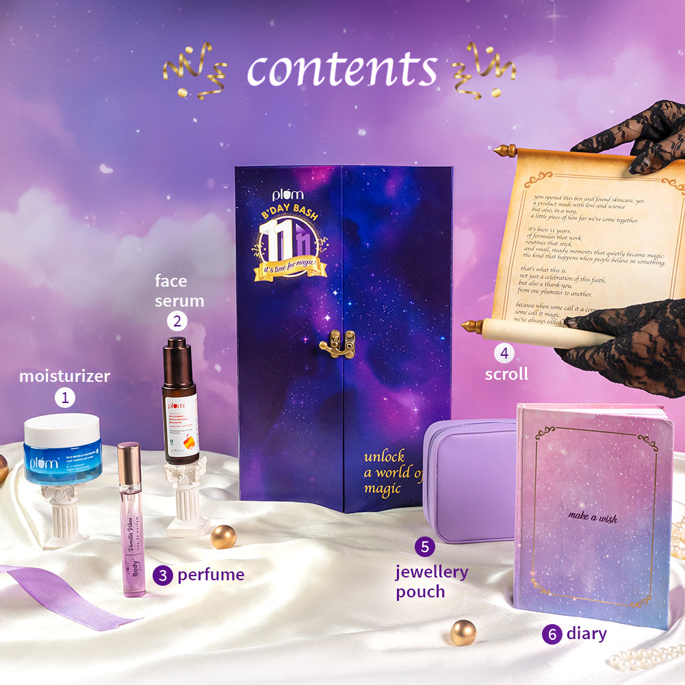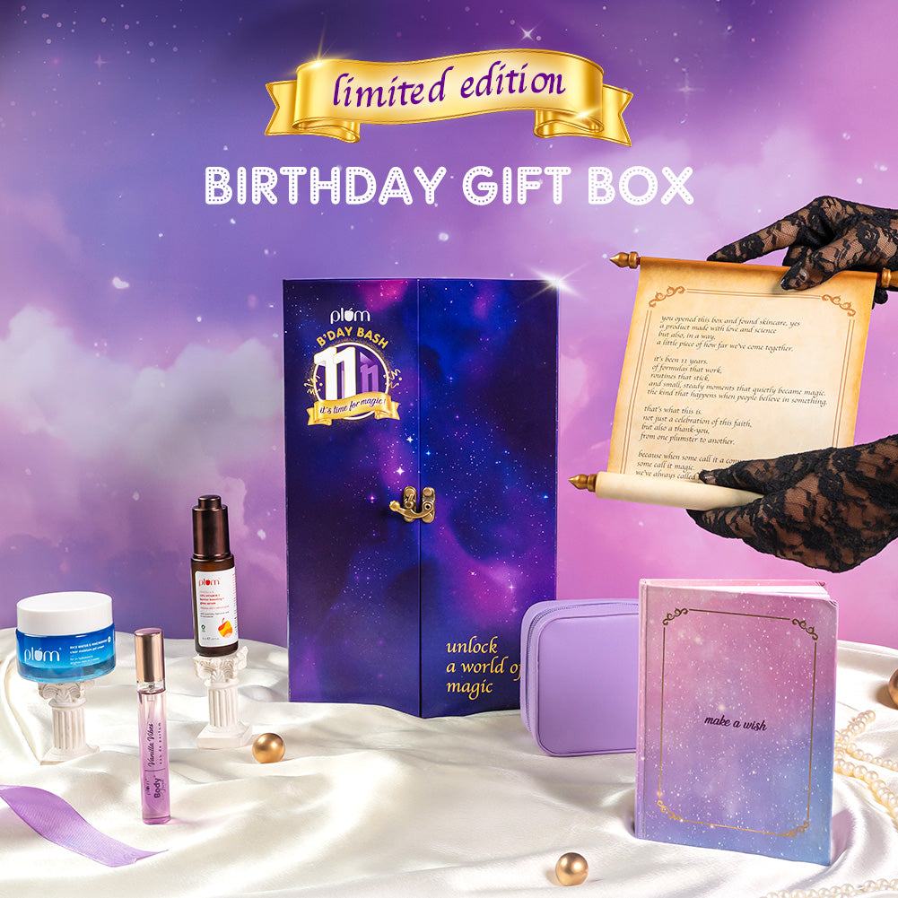 Celebrate 11 magical years of Plum with this specially curated gift box! Packed with limited-edition goodies, fan favourites, and a touch of nostalgia, it’s our way of saying thank you for being part of the journey.